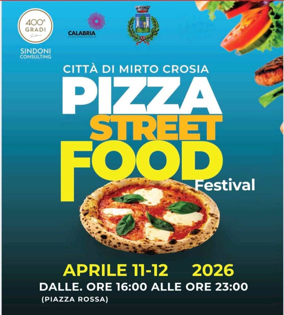 Il Comune di Mirto Crosia si prepara ad accogliere il “Pizza Street Food Festival 2026”, in programma l’11 e 12 aprile, dalle ore 16:00 alle 23:00, nella suggestiva cornice di Piazza Rossa.