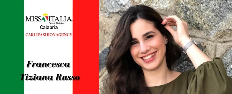 Chi è la calabrese in gara – Francesca Tiziana Russo ha 19 anni e viene da Reggio Calabria. Ha da poco intrapreso gli studi universitari in Economia e management dei beni culturali e dello spettacolo presso l’Università Cattolica del Sacro Cuore a Milano; ed è stata già eletta, nel corso delle selezioni, Miss Città di Diamante, nella splendida location dell’anfiteatro dei Ruderi di Cirella, grazie al patrocinio dell’Accademia italiana del peperoncino di Enzo Monaco. Gli agenti della CarliFashionAgency, per il sesto anno consecutivo esclusivisti per Miss Italia Calabria: “Siamo orgogliosi della nostra bellissima Francesca Tiziana.” – dichiarano Linda Suriano e Carmelo Ambrogio –“Sicuri che continuerà a entusiasmarci anche da Roma, le auguriamo di raggiungere il traguardo ambito. Il periodo della pandemia è stato molto difficile, ma lo abbiamo affrontato con lo spirito di sempre, di passione e dedizione. Tante le difficoltà, però alla fine siamo riusciti ad eleggere la nostra Miss Calabria.