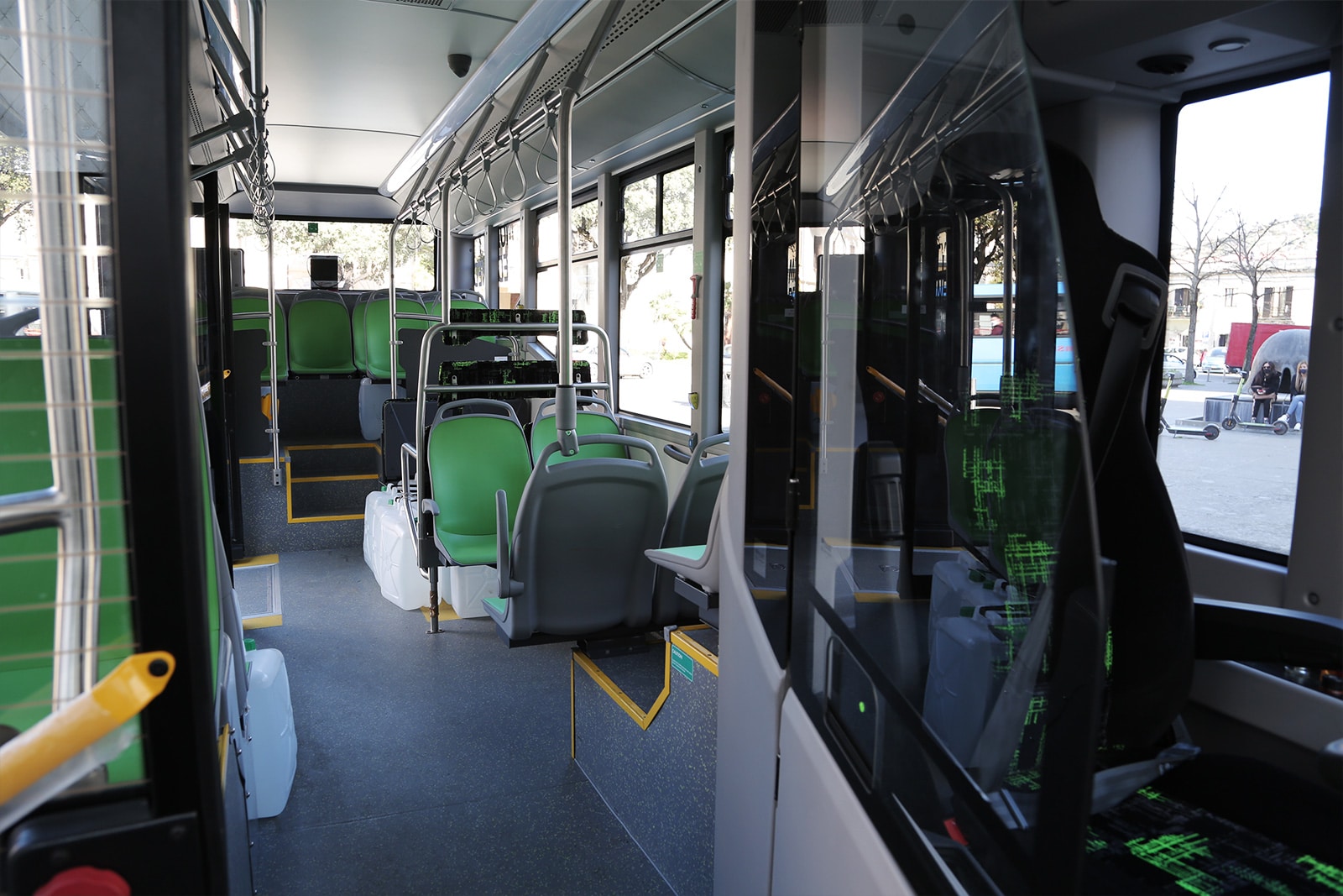Buone le performance del bus che, grazie al motore asincrono può ottenere l’effetto della ricarica delle batterie (quattro poste sul tetto del vettore e la quinta al centro). Questo non appena il guidatore del mezzo rilascia il pedale dell’acceleratore.