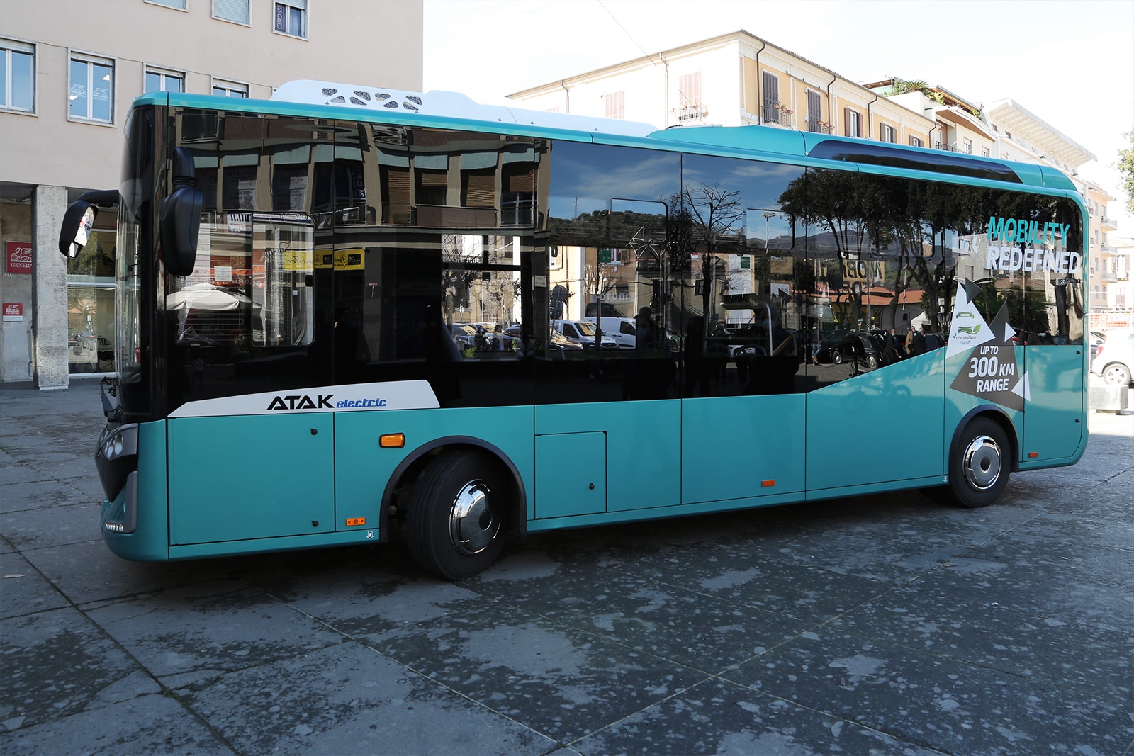 Il bus che ha stazionato in Piazza dei Bruzi è un vettore lungo 8 metri, completamente elettrico. Alimentato da cinque batterie caricate in parallelo. Con un’autonomia di 220 KW all’ora. E consente una percorrenza tra i 270 e i 300 chilometri, senza interruzioni.