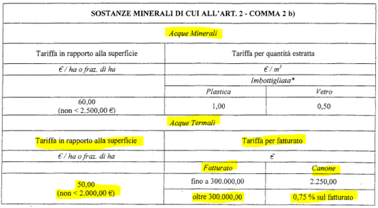 la legge regionale 40/2009 ed il regolamento regionale 3/2011 il quale stabilisce che “per le acque minerali e termali, l’entità del contributo annuo da corrispondersi all’autorità competente è stabilita nella misura risultante dalla normativa regionale vigente.”