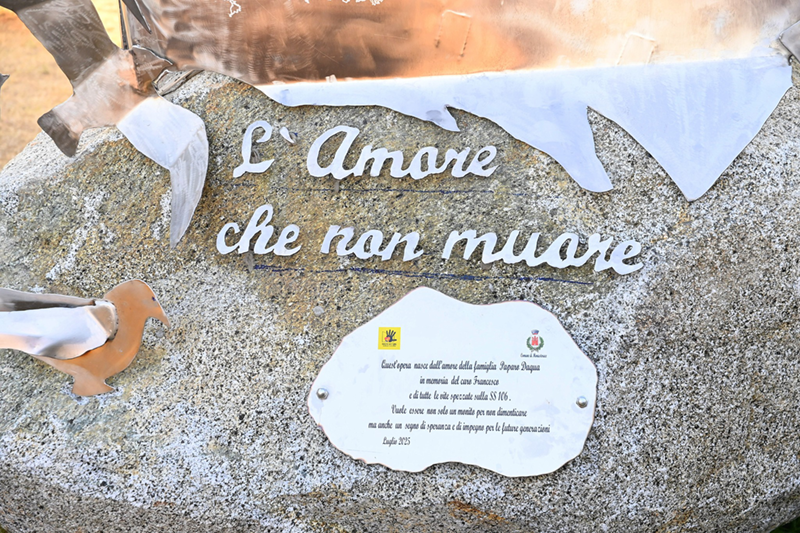 Monasterace, 6 luglio 2025 – C’è un momento in cui il dolore si fa luce. Un istante in cui la memoria diventa arte. E dove le lacrime si trasformano in gabbiani. È accaduto ieri sera, sul lungomare di Monasterace, durante l’inaugurazione dell’Opera d’Arte “L’Amore che non muore”, dedicata a Francesco “Ciccio” Paparo e a tutte le vittime della famigerata Strada Statale 106.