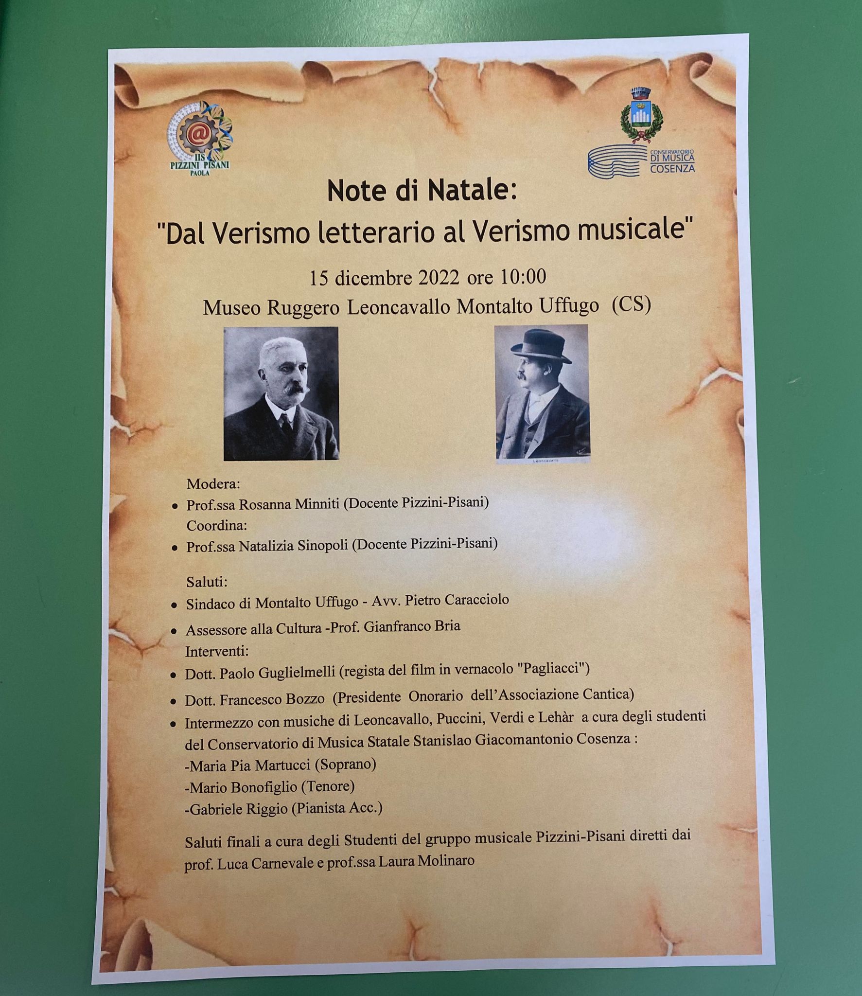 L’istituto “ISS Pizzini Pisani di Paola” in collaborazione con il comune di Montalto Uffugo ed il conservatorio Giacomantonio di Cosenza presenta il percorso didattico “dal verismo letterario al verismo musicale” ideato dalla prof.ssa Natalizia Sinopoli in seno alla progettazione inerente la letteratura verista e la conoscenza del territorio.