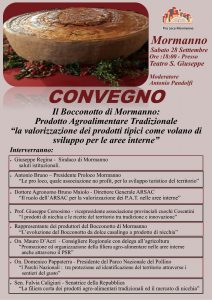 Sabato 28 Settembre alle ore 18:00 presso il teatro San Giuseppe il convegno “Bocconotto di Mormanno: prodotto agroalimentare tradizionale – la valorizzazione dei prodotti tipici come volano di sviluppo per le aree interne” vedrà protagonisti il Sindaco, Giuseppe Regina, Antonio bruno, presidente della Pro Loco di Mormanno, bruno Maiolo, direttore generale dell’Arsac, Giuseppe Cersosimo, vice presidente associazione provinciale cuochi cosentini, i produttori del bocconotto, Mauro D’Acri, consigliere regionale con delega all’Agricoltura, Domenico Pappaterra, presidente del Parco Nazionale del Pollino, Fulvia Caligiuri, senatrice della Repubblica, per un ragionamento complessivo sulle potenzialità di sviluppo di questo importante dolce della tradizionale locale.