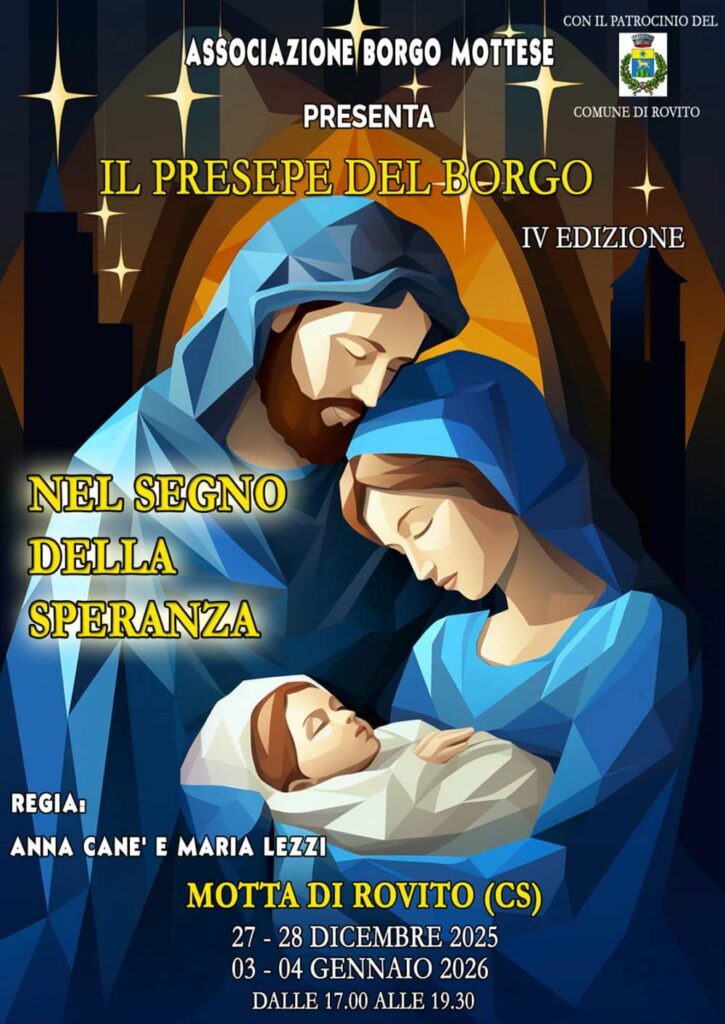 Ritorna la magia del Presepe vivente nel suggestivo Borgo di Motta di Rovito. Fortemente voluto dal Presidente dell’Associazione Borgo Mottese, Antonio Miceli, dalla Vice Presidente Sonia Pranno e dalla Tesoriera Maria Gabriella Milito, Il Presepe del Borgo è una rappresentazione che suscita molto interesse e partecipazione e che ha registrato nel corso degli anni una notevole affluenza di visitatori.