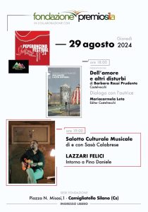 Le alchimie di una sera d’estate. In Sila. Libri e musica che incontrano il pubblico. Succede a Camigliatello Silano, nella sede della Fondazione Premio Sila. Il rendez-vous è fissato per giovedì 29 agosto. Alle 18, apre le danze, la presentazione del libro di Barbara Rossi Prudente, “Dell’amore e altri disturbi”.