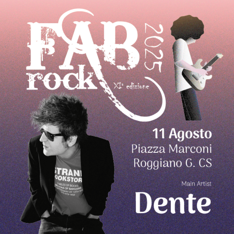 Un appuntamento fisso dell’estate calabrese, quello dedicato a Fabrizio Puzzo, cittadino di Roggiano scomparso prematuramente nel 2006 a soli 17 anni. L’undicesima edizione sarà un’occasione per onorare la sua memoria e celebrare i valori dell’amicizia e della comunità. Nato dall’amore e dalla determinazione dei suoi migliori amici, il Fabrock è diventato un evento irrinunciabile per tutti coloro che vogliono ricordare Fabrizio e condividere i valori che ha rappresentato. Con un programma ricco di musica, arte e cultura, l’evento mira a coinvolgere la comunità locale e a mettere in risalto le eccellenze calabresi. Ad esibirsi sul palco del Fabrock l’11 Agosto 2025 ci saranno DENTE, uno dei nomi più importanti del cantautorato indie italiano, Malerva, band emergente roggianese di stampo grunge con un futuro ancora tutto da scrivere, mentre l’open act sarà affidato al giovanissimo Aldo Mancino, talentuoso e virtuoso chitarrista e cantautore campano. La chiusura della serata sarà affidata al djSet di Vincenzo Severino.