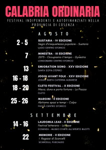 Alla retorica del brand regionale “Calabria Straordinaria”, che vende un mare da bere, eccellenze e grandi eventi estivi; le associazioni e i movimenti popolari attivi nel cosentino raccontano la “Calabria Ordinaria”: eventi e festival che parlano di spopolamento, emigrazione, precarietà e mancanza di diritti, ma anche Restanza, cultura popolare e memoria.