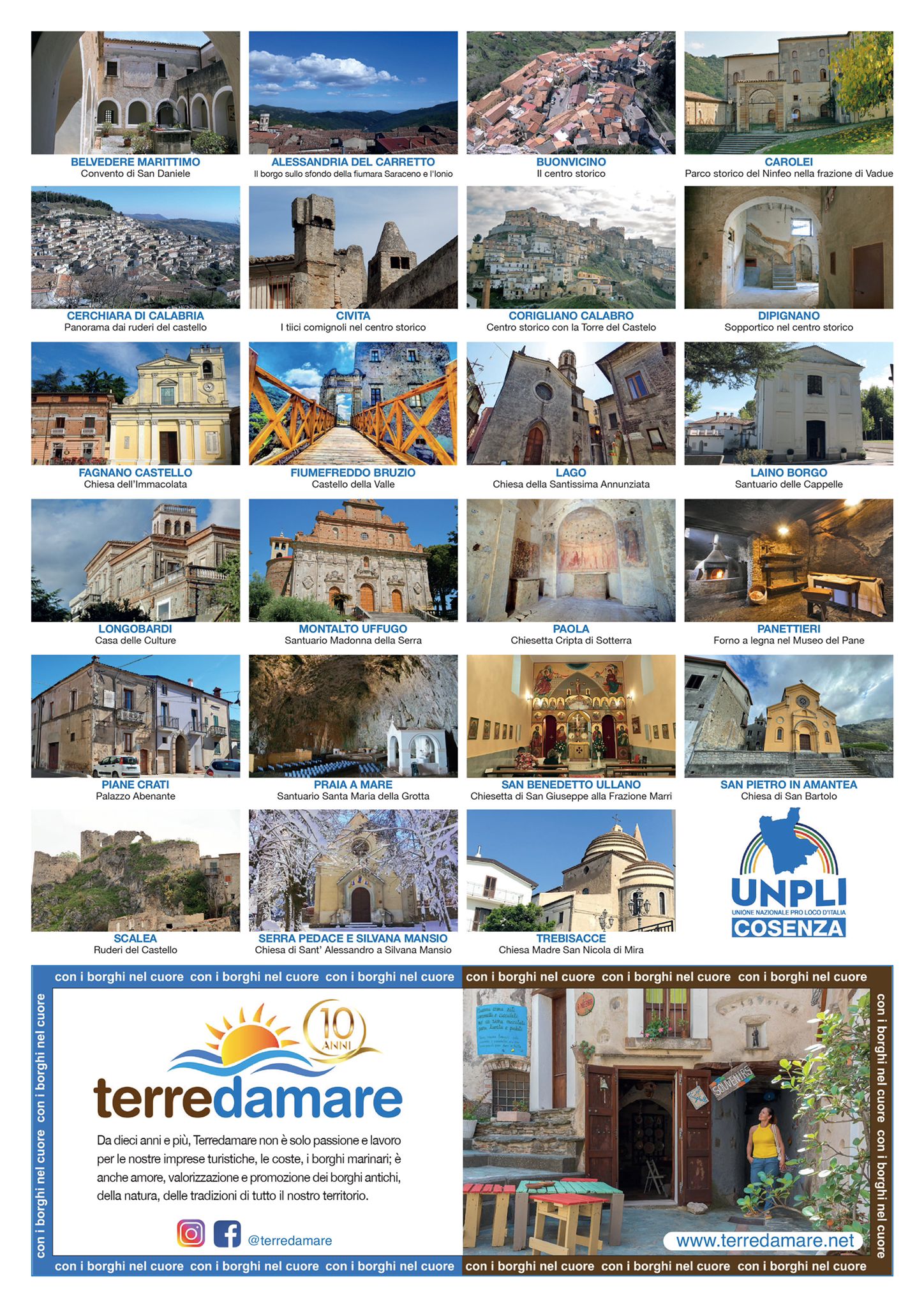 Il progetto, unitamente ad una serie di Pro Loco della provincia di Cosenza, suddivise per aree, ed il patrocinio dell’ UNPLI Calabria rappresentata dal Presidente Filippo Capellupo, narra del patrimonio culturale immateriale: borghi, territorio, enogastronomia, centri storici attraverso splendide immagini, con il coinvolgimento dell’Ente Parchi Marini Regionale e dei due parchi nazionali ricadenti in provincia di Cosenza, quello della Sila e quello del Pollino collegando appunto mare e monti.