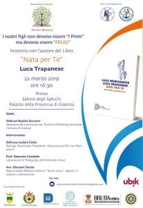 Solidarietà, inclusione sociale, tolleranza ma soprattutto amore per il prossimo. Sono solo alcuni dei valori che caratterizzeranno l’incontro in programma venerdì 22 marzo alle ore 16.30 presso il Salone degli Specchi del Palazzo della Provincia di Cosenza, dove sarà presentato il libro scritto a quattro mani da Luca Trapanese e Luca Mercadante, intitolato “Nata per te”.