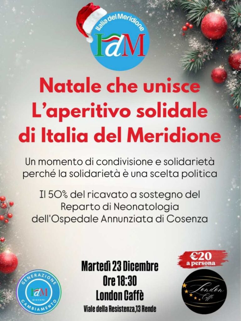 Durante l’evento interverrà il Consigliere regionale Orlandino Greco, leader di Italia del Meridione.