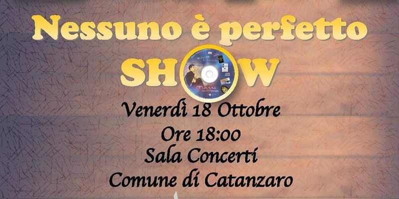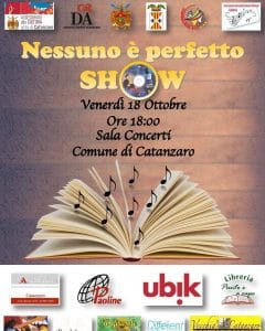 Ancora una volta la città di Catanzaro diviene latrice di spettacolo, di cultura, di originalità soprattutto. “Nessuno è perfetto show” è infatti l’evento che vedrà in scena come protagonisti, tutti insieme, musica, poesia, teatro, giornalismo, improvvisazione e tanto altro. Infatti, venerdì 18 ottobre alle ore 18,00 presso la Sala Concerti del Comune di Catanzaro verrà portato in scena uno spettacolo veramente innovativo e originale, nel cuore del centro storico cittadino. Dalla musica classica alla poesia, dal cantautorato al teatro, dal giornalismo alle improvvisazioni, non mancheranno colpi di scena, per una serata per tutti i gusti, capace di far ridere, riflettere, emozionare, divertire.