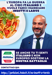 Italexit con Paragone non può accettare la folle deriva che ha portato la Commissione Europea ad autorizzare la produzione, commercializzazione e quindi l’utilizzo a scopo alimentare di farina derivata dall'”Acheta domesticus”, che altro non è che il grillo