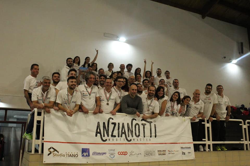 Sono ancora una volta gli Anzianotti i campioni regionali assoluti per il 2019 che con 79 medaglie totali, sono saliti sul gradino più alto del podio dei Campionati Regionali Master Calabria domenica scorsa, nella piscina comunale di Cosenza. I 43 ori, 21 argenti e 15 bronzi hanno decretato la squadra Anzianotti Nuoto Master vincitrice, con 74754 punti e una media per singola gara di 678, seguita dai 44943 punti della Sport4life con una media di 624 e dalla Lacinia nuoto con 33102 punti e una media di 662 per gara.