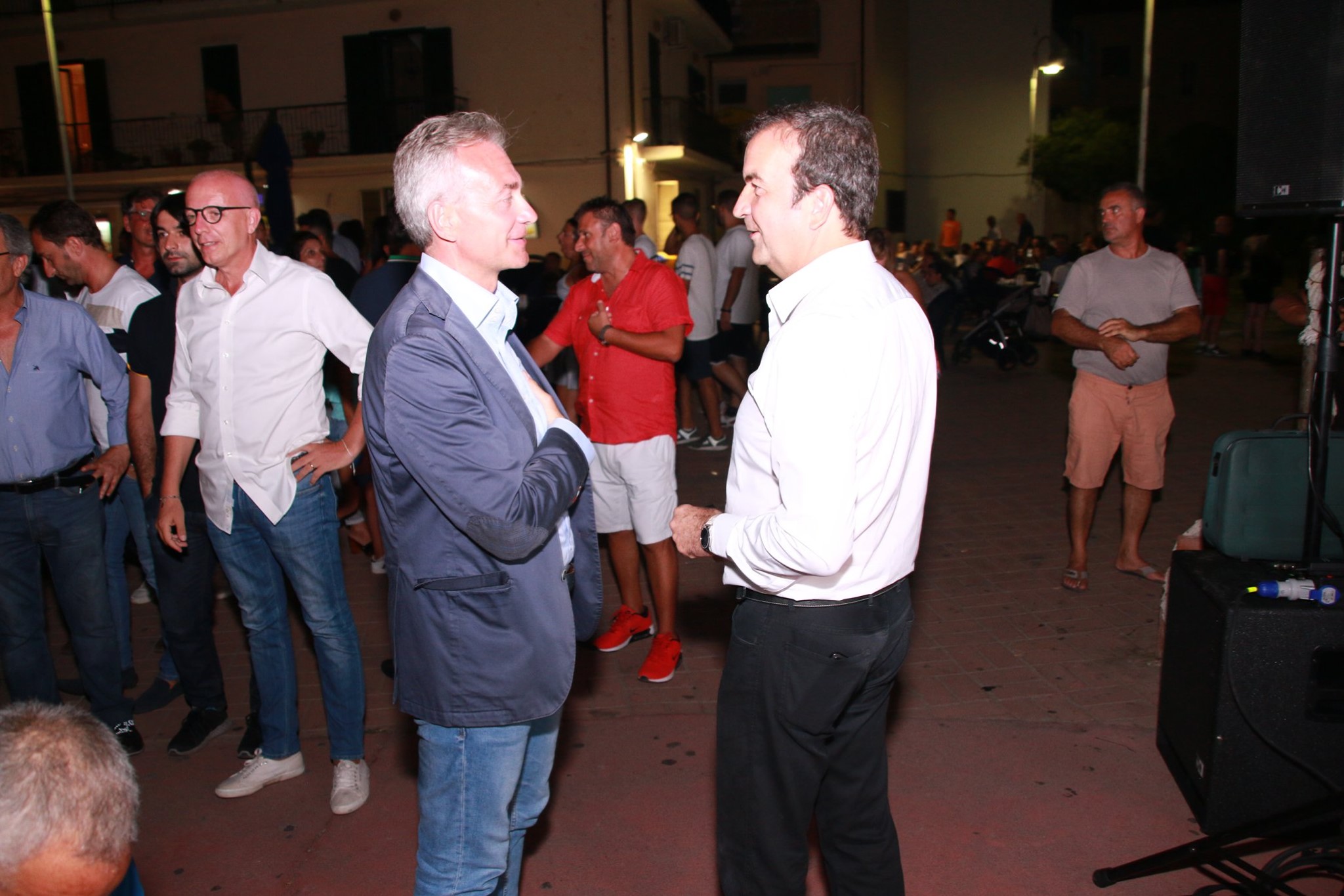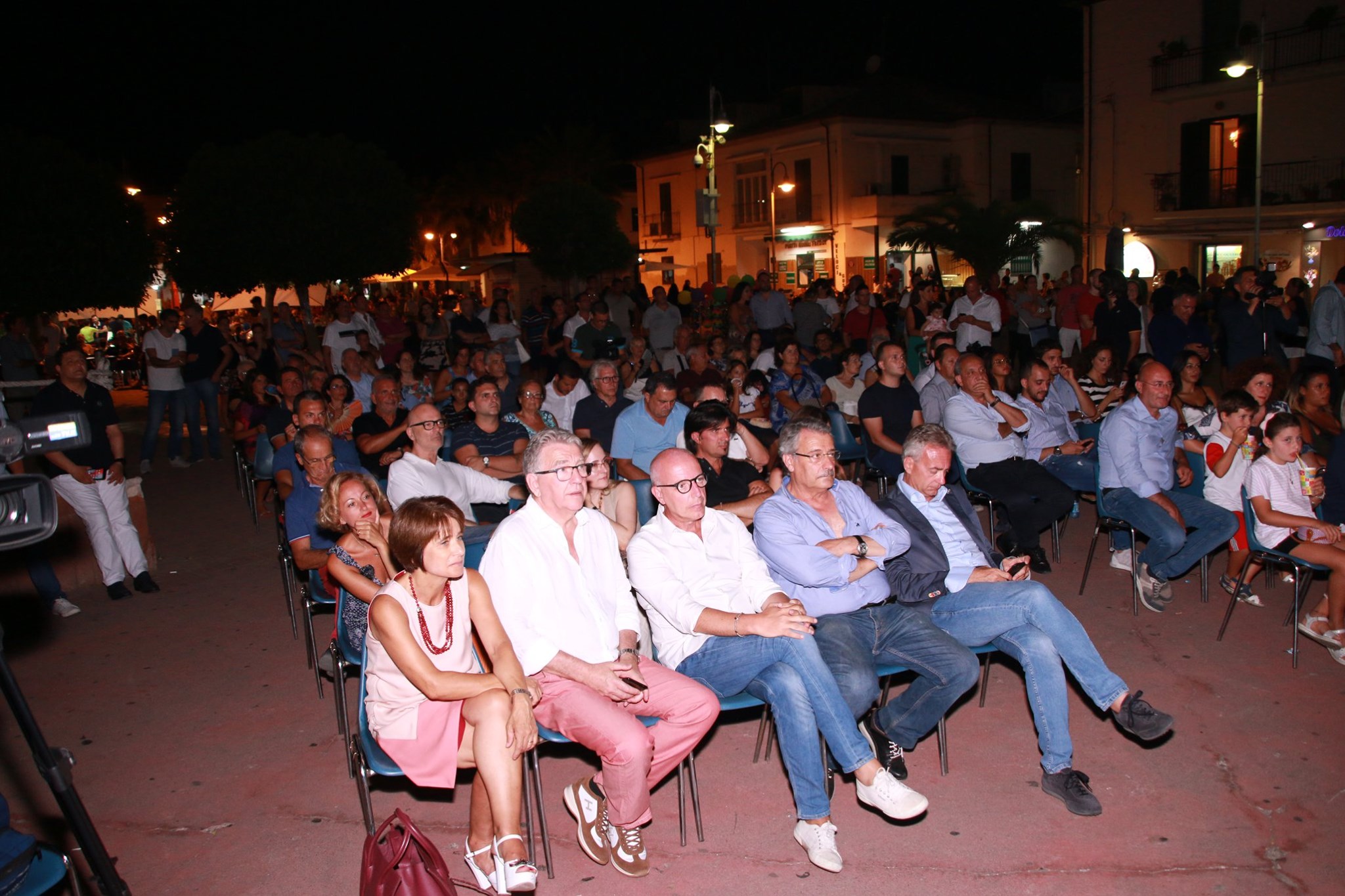 Nella platea gremita di piazza Portofino a Schiavonea di Corigliano Rossano, tra residenti e turisti, assessori, consiglieri, curiosi, in questo caldissimo 13 agosto si riconoscono il giovane sindaco Flavio Stasi, Gianluca Gallo, Giovanni Dima.
