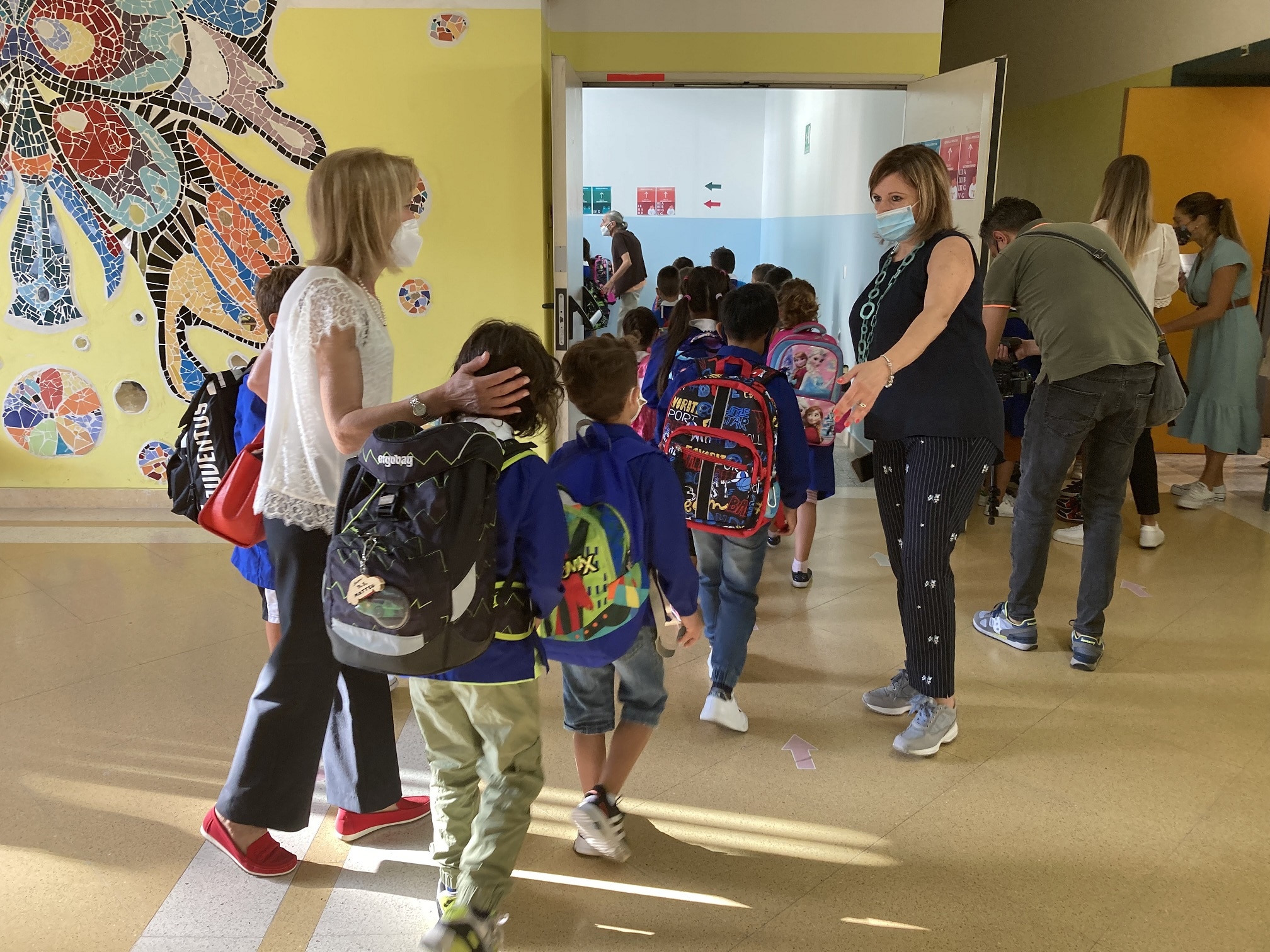 gli alunni delle scuole elementari di via Roma entrano in classe