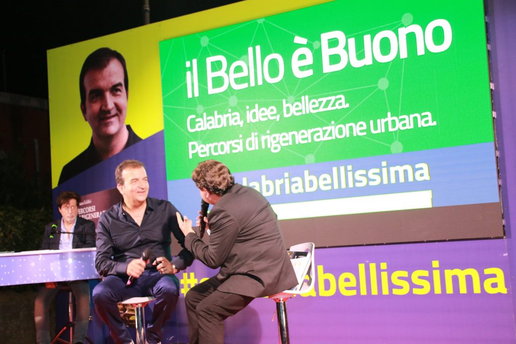E ancora il Parco del benessere in fase di costruzione, l’importanza che una pubblica amministrazione deve dare ai progetti legati al benessere e alla salute per stimolare le persone in percorsi di invecchiamento attivo. Ancora: la ristrutturazione delle scuole di competenza comunale e la messa in sicurezza degli istituti, il nuovo stadio, le piste ciclabili con la Ciclopolitana, l’ottima intuizione del progetto Bocs Art che ha valso alla città il premio Smau 2015. Difficilissimo elencare in sintesi le tantissime azioni messe in campo. A tratti il discorso viene intermezzato da un brano musicale scelto ad hoc (“Tutta mia la città”, “Il ragazzo della via Gluck”, eccetera) cantato dal pianista Paolo Aragona. Oggi Cosenza è la quinta città in Italia per qualità della vita, designata Città europea dello sport 2020, più volte premiata dai Comuni ricicloni per le alte percentuali ottenute nella raccolta differenziata. Ma i traguardi raggiunti a Cosenza sono solo il punto di partenza per parlare della Calabria che dovrà venire. Mario Occhiuto allora approfondisce la sua visione sull’intero territorio regionale e lascia davvero immaginare che un’altra Calabria è possibile. Un’azione di sistema – ripete a più riprese – che è rivolta ad ogni singola attività della svolta ecologica per la Calabria. Per restare sul pezzo, nei giorni del JovaBeachTour a Praia a Mare e a Roccella ionica, l’argomento viene introdotto dal video di Jovanotti sul refrain “l’inizio di una nuova era”. Perché la Calabria di Mario Occhiuto presidente, è una Calabria green, basata sulle energie rinnovabili e sul rispetto per l’ambiente che è tutela del suo futuro. La necessità più urgente rimanda a politiche sostenibili che cambino l’immaginario delle persone sulla Calabria. Parla di turismo, Occhiuto. Di sanità, nuovi ospedali, della cultura dell’effimero che è un concetto profondo perché legato alla convivenza, alla convivialità, all’industria dello spettacolo e quindi alla ricchezza di una terra. “Penso ad alcune grandi opere da realizzare nella regione come opere di attrattività che ne diano un impatto riconoscibile all’esterno e trasmettano un senso di orgoglio ai calabresi”.