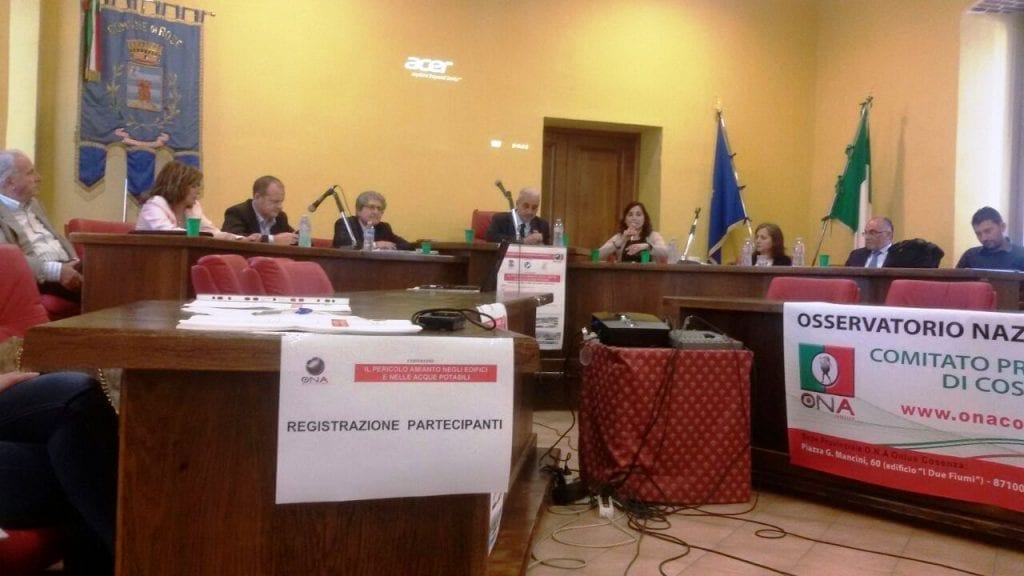 Il pericolo amianto negli edifici e nelle acque potabili”, organizzato dall’ONA Cosenza (Osservatorio Nazionale Amianto) e patrocinato dal Comune di Rose, dall’ArpaCal e dall’ASP. Il Presidente dell’ONA, ing. Giuseppe Infusini nel suo intervento, oltre che a fornire dati sulla presenza di questo pericoloso materiale, ha evidenziato gli adempimenti degli enti (regione e comuni) e le azioni che se intraprese consentirebbero, da subito, la riduzione del rischio amianto.