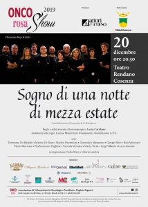 A permettere tutto questo, i Phonendo Boys & Girls, un gruppo di medici prestati alla recitazione da almeno 9 anni, che si offriranno al palcoscenico con “Sogno di una mezza estate” – guidati da Lucia Catalano – regista, in collaborazione con la compagnia AttorInCorso A.P.S., per sostenere i progetti di OncoRosa, un’associazione di Volontariato per Malati Oncologici senza scopi di lucro con sede presso l’Unità Operativa di Oncologia Medica del Presidio Ospedaliero ” Annunziata” di Cosenza.