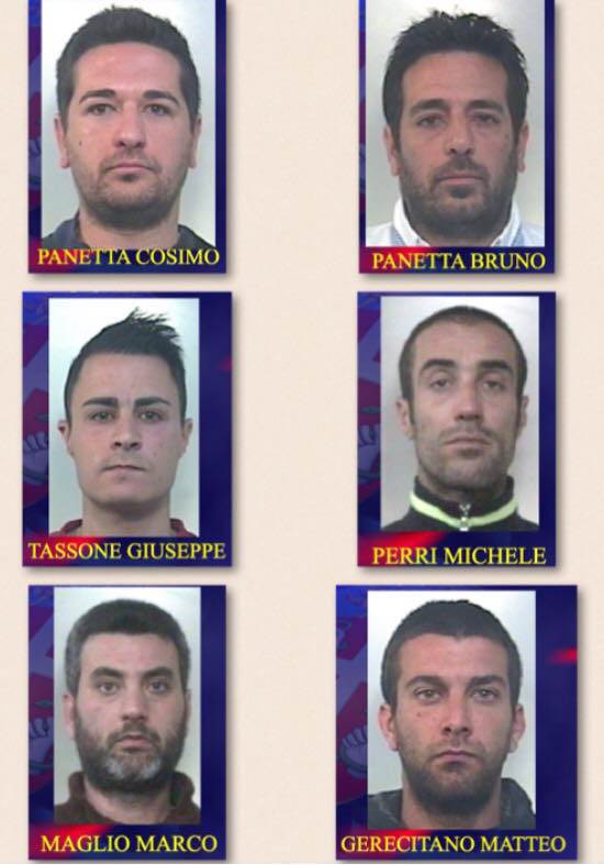 Gli arrestati, ora in carcere sono: Perri Michele, nato a Cosenza il 14/02/81, residente in rende, censurato, Gerecitano Matteo, nato a Siderno il 27/01/86 residente a Pazzano, Panetta Cosimo, nato a Siderno il 24/11/89 residente a Placanica, Panetta Bruno, nato a Sidenro il 29/11/80, residente a Placanica.