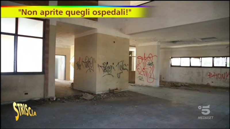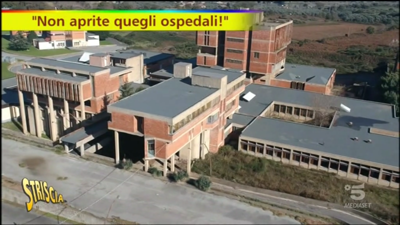 Calabria. “Striscia la notizia” con il suo inviato Luca Galtieri, ed il reporter Massimo Mercuri, visita gli ospedali costruiti e mai entrati in funzione.