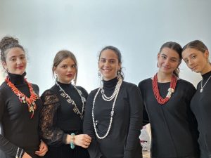L’attenzione degli studenti è stata viva e continua, sapientemente stimolata dai relatori. Il culmine è stata l’illustrazione che il maestro Sacco ha fatto di alcuni capolavori da lui portati in visione. Alcune sue creazioni sono state poi indossate dalle studentesse, che hanno improvvisato una sfilata, accompagnate dalla voce dell’artista che raccontava i suoi gioielli.