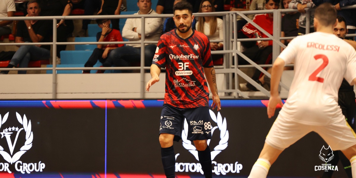 Ci pensa però Bavaresco a far esplodere il PalaCosentia al termine di una fantastica azione personale chiusa con un piattone nel sette: 2-1 Pirossigeno. L’equilibrio viene ristabilito da Fortino che buca Del Ferraro sugli sviluppi di un corner. Poco più tardi i rossoblù si fanno sorprendere nuovamente e la Roma torna in vantaggio con una velocissima combinazione che porta alla marcatura Avellino.