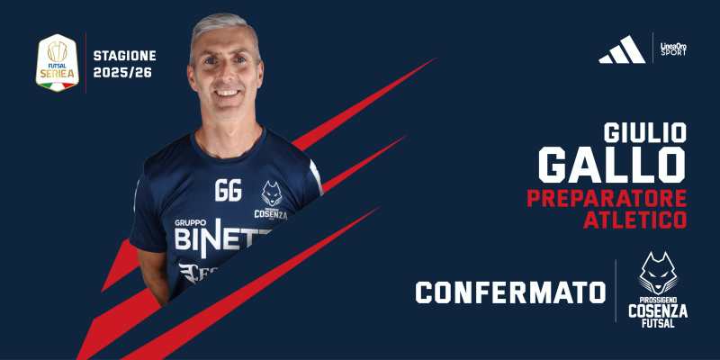 La Pirossigeno Cosenza conferma anche per la prossima stagione Giulio Gallo nel ruolo di preparatore atletico della prima squadra.