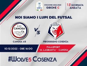 I rossoblù, agli ordini di mister Tuoto e dello staff tecnico, hanno infatti iniziato a preparare nel pomeriggio il prossimo impegno di campionato. Si giocherà sabato 10 dicembre, con calcio d’inizio alle ore 16:00, al Palasport “Mauro Lagrasta” di Canosa. Avversaria dei lupi la compagine locale del Canosa A 5, attualmente ottava in graduatoria a 18 punti, nella gara valevole per la tredicesima giornata del girone C di Serie A2.