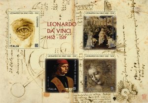 Poste Italiane comunica che oggi 2 maggio 2019 vengono emessi dal Ministero dello Sviluppo Economico quattro francobolli commemorativi di Leonardo da Vinci, nel V centenario della scomparsa, relativi al valore della tariffa B pari a 1,10€ ciascuno.