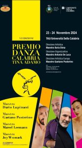 “La magia della danza continua!”. È questo il claim per promuovere uno degli eventi più attesi dell’anno: Il Premio Danza Calabria “Tina Adamo” torna per la sua VI edizione. “Continuiamo a ballare con la passione e l’energia di Tina”, anticipano organizzatori e protagonisti. Direzione Artistica, Maestra Ilaria Dima, Direzione Organizzativa, Maestro Antonio De Luca e Direzione Artistica Europa del Maestro Gaetano Posterino. Le date? 23 e 24 novembre al teatro Tau dell’Unical.