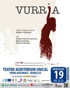 Si alza il sipario del Teatro Auditorium Unical (TAU) per la “Rassegna L’Altro Teatro”: mercoledì 19 novembre, ore 20.30, andrà in scena “Vurrìa”, prima nazionale dello spettacolo scritto e diretto da Matteo Lombardo, con Diletta Vittoria Ceravolo, Mara Scarcella e Federica Sorace.