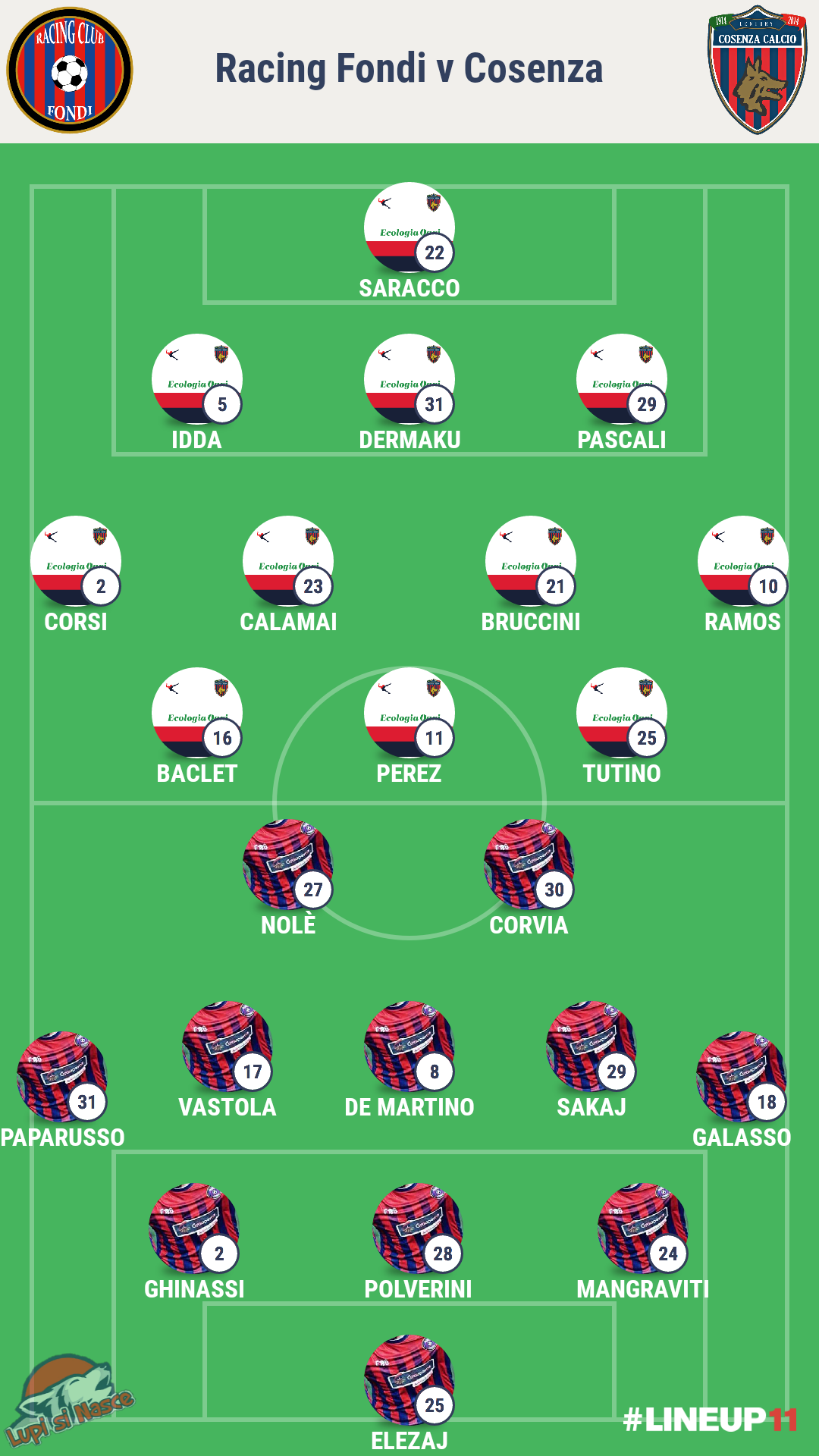 Un solo precedente per Racing Fondi-Cosenza in terra laziale: quello dell’anno scorso in cui i silani ribaltarono lo svantaggio iniziale firmato da Albadoro su calcio di rigore grazie alle reti di Tedeschi e Filippini.