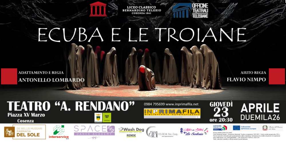 Il mito antico torna a parlare alla città, e lo fa con la forza di un grido che attraversa i secoli. Il 9 aprile, presso la Commissione Cultura del Comune di Cosenza, presieduta da Mimmo Frammartino, è stato ufficialmente presentato l’evento teatrale dell’anno: la nuova produzione delle Officine Teatrali Telesiane (OTT). Quest’anno, il Liceo Classico “B. Telesio” porterà in scena al Teatro Rendano un dittico potente e doloroso: Ecuba e Le Troiane.