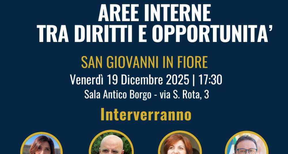 “Aree interne tra diritti e opportunità”: confronto pubblico a San Giovanni in Fiore con Pasquale Tridico
