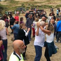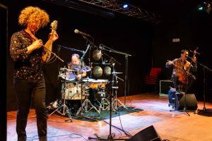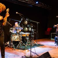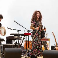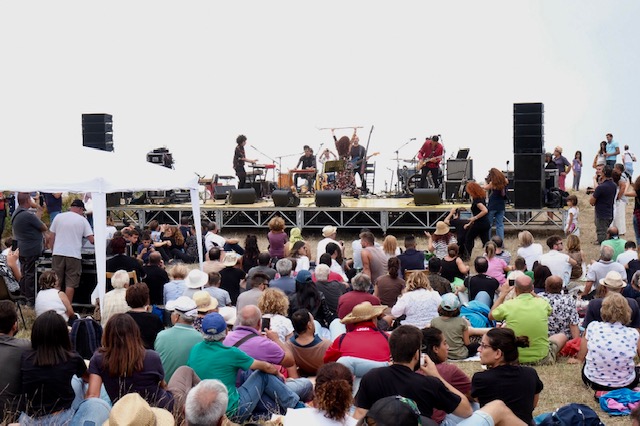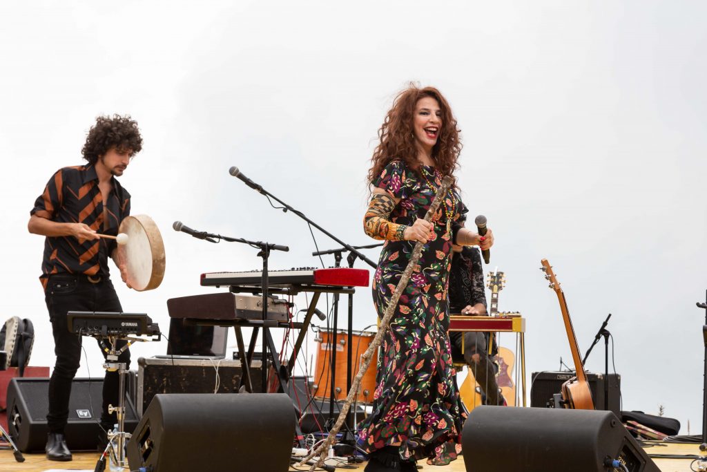 A riscaldare e risuonare nell’aria fresca la meravigliosa voce di Teresa De Sio. «Non mi era mai capitato di esibirmi su un palcoscenico così particolare. È un posto semplicemente bellissimo, la natura è selvaggia, incontaminata, le persone mi hanno accolta con calore e familiarità. Tutto questo mi emoziona ed entusiasma» ha dichiarato la cantante partenopea. Un concerto indimenticabile quello della De Sio che ha aperto con alcune canzoni contenute nel nuovo album “Puro desiderio”, un disco in bilico tra i generi, difficilmente etichettabile: una raffinata e intensa miscela elettro-acustica di percussioni, strumenti etnici e chitarre steel, e continuato con i suoi più noti successi. Alla fine tutti in piedi a ballare a piedi nudi sull’erba: questo è il senso ultimo di Radicamenti. In serata, all’interno del teatro comunale il trio internazionale Violons Barbares.