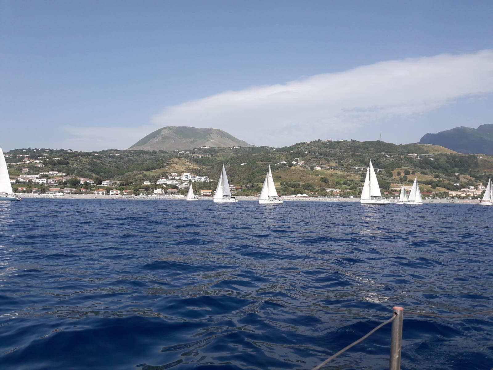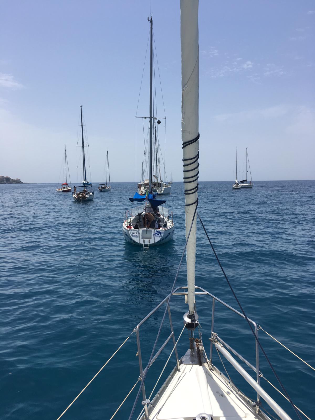 Il primo lato del percorso era, di bolina, verso l’isola di Cirella; poi superata la boa era previsto un rientro verso terra nuovamente verso il lido Cristina di gran lasco magari con le vele colorate.