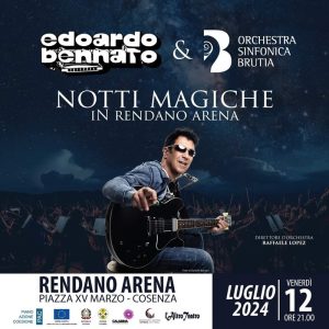 Il musicista e cantautore napoletano venerdì 12 luglio, alle ore 21.00, salirà sul palco di Piazza XV Marzo per un evento speciale dal titolo “Notti Magiche in Rendano Arena”. Sarà un’esperienza emozionale, con i brani e le melodie delle canzoni più celebri di Edoardo Bennato che incontreranno la musica classica di Gioacchino Rossini. Una ballata acustica resa spettacolare grazie all’Orchestra Sinfonica Brutia, diretta da Raffaele Lopez.