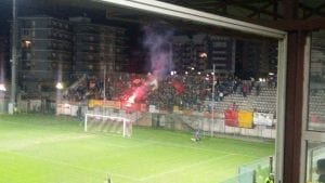 Ritmo indiavolato per la squadra biancorossa che mettendo il match sulla corsa e sull’agonismo riesce a passare meritatamente in vantaggio al 17 minuto con Vivacqua, abile a sfruttare un cross proveniente dalla sinistra di un indemoniato Blaze, che alla fine risulterà il migliore in campo per distacco, veramente un cavallo di razza il giovane colored classe 94. Il Catanzaro riesce a scuotersi soprattutto nella ripresa dopo l’ingresso in campo di Infantino, che prima con furbizia provoca l’espulsione di un ingenuo Porcaro, e poi a 10 minuti dalla fine con freddezza realizza un calcio di rigore concesso forse con troppa manica larga dall’arbitro Fiorenzi di Frosinone, per lui voto ampiamente al di sotto della sufficienza. Il finale di partita vista la superiorità numerica sembra essere in favore della squadra giallorossa, ma la squadra di Trocini ha mille risorse, prima Forte con una strepitosa parata nega il goal agli attaccanti del Catanzaro, poi Coppola subentrato dalla panchina pochi istanti prima, in pienza zona cesarini, con un preciso colpo di testa sul secondo palo, fa esplodere di gioia tutto il Lorenzon, ammutolendo i circa 500 tifosi catanzaresi giunti stasera a Rende.