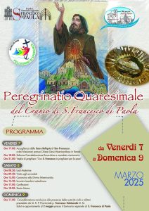 Arriverà venerdì 7 marzo nella chiesa di Gesù Misericordioso in Rende, accompagnata dai Padri Minimi di Paola, la reliquia del santo paolano. Saranno lì ad accogliere la reliquia la comunità parrocchiale con il parroco Don Mario Ciardullo. Nei giorni a seguire diversi saranno gli intensi momenti di preghiera, come segnalati dal programma.