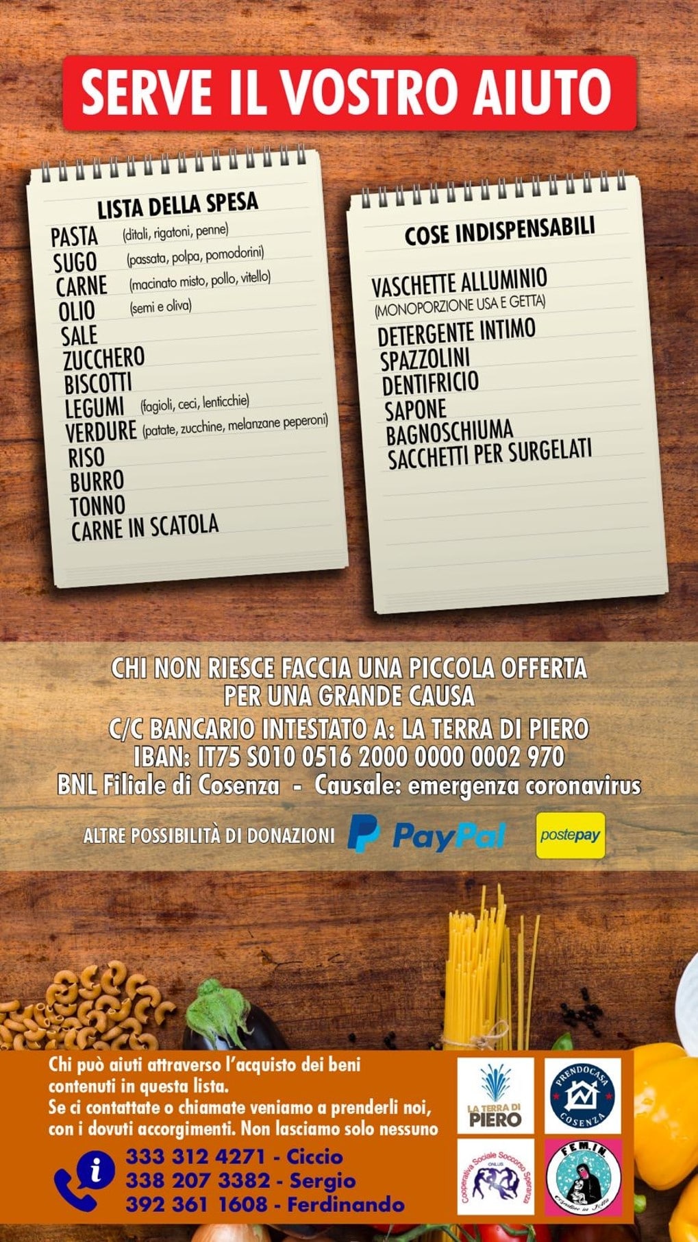 Per chi volesse dare il proprio contributo si potranno contattare le associazioni, oltre a consultare l’elenco dei generi di prima necessità che servono, sul sito istituzionale del comune di Rende.