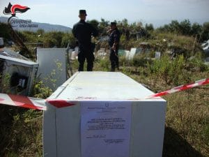 Al suo interno depositate sul suolo, vecchie apparecchiature elettriche ed elettroniche e relativi componenti in parte rimossi, frigoriferi di vario genere e dimensioni, congelatori, lavatrici, lavastoviglie, forni da cucina, piani cottura, cucine, televisori, condizionatori e diverso materiale ferrosi. Si è pertanto proceduto al sequestro dell’area, sottoposta anche a vincolo idrogeologico e al deferimento del proprietario. Inoltre si è dato luogo al campionamento da parte dell’Arpacal del terreno dove è ubicata la discarica.
