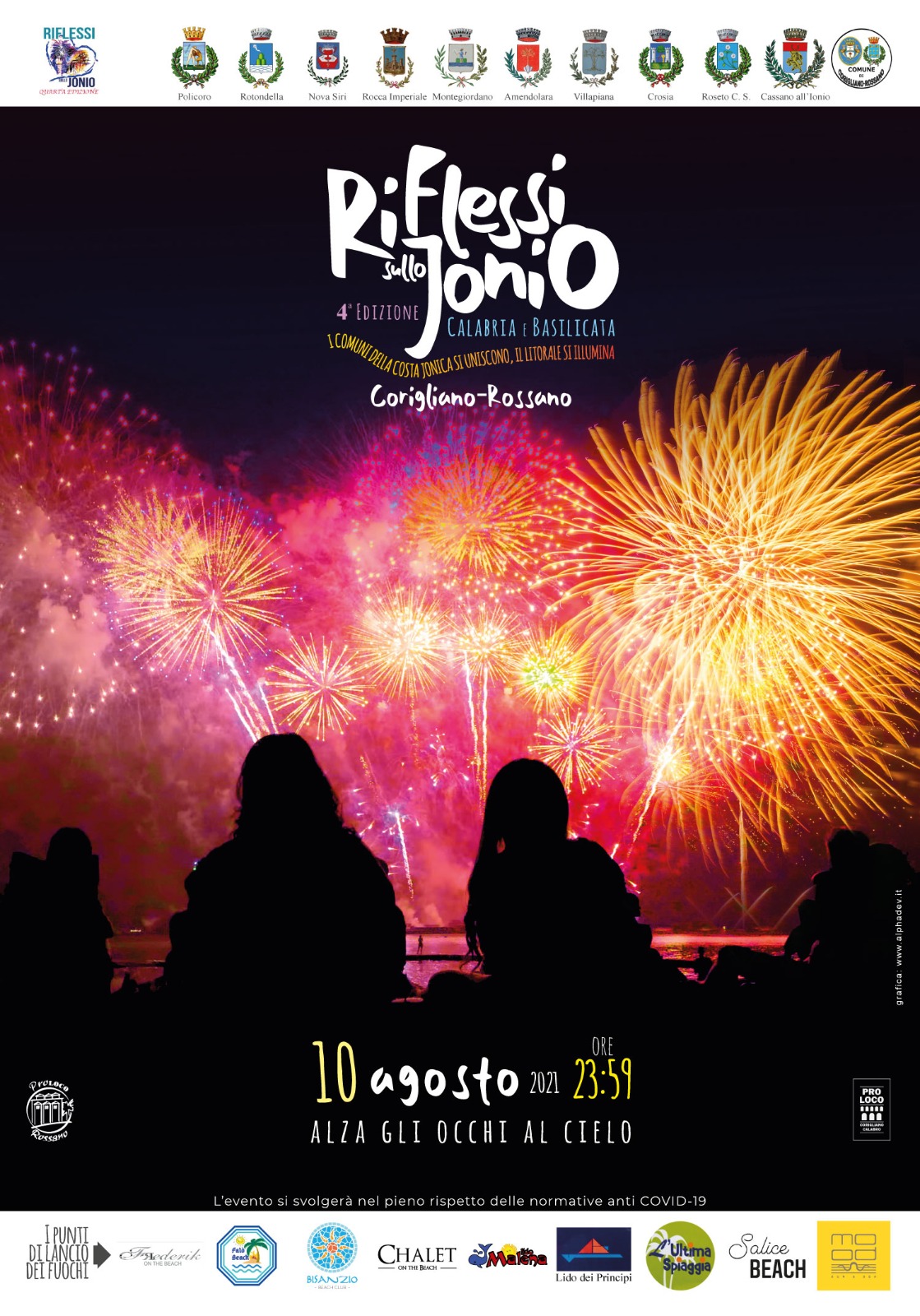 «Undici comuni, due Regioni, unite dal mare Ionio e da un solo intento, regalare una serata di gioia – ha affermato l’assessore al Turismo, Tiziano Caudullo – c’è stato molto lavoro dietro. Ma siamo orgogliosi come amministrazione comunale del risultato raggiunto e di aver allargato il numero dei partecipanti all’evento giunto alla sua quarta edizione. Raccogliamo l’eredità di quanto pensato e fatto in precedenza, migliorando l’offerta, allargando la platea, con lo scopo unico di fare rete e offrire uno spettacolo in più a turisti e cittadini»