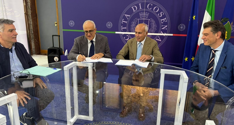Il sindaco Franz Caruso e il prof.ing. Mario Maiolo, quest’ultimo nella sua qualità di delegato dal Rettore Leone per il coordinamento dello Spoke 1 dell’ecosistema dell’innovazione Tech4You, hanno sottoscritto ieri a Palazzo dei Bruzi un accordo di programma quadro per prevenire rischi alluvionali in città tra il Comune di Cosenza e l’Unical, rappresentata anche dal prof. Giuseppe Mendicino responsabile scientifico dell’accordo per conto del Dipartimento di Ingegneria dell’Ambiente .