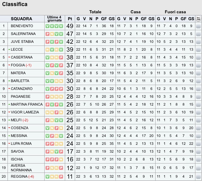 10 Reti: Eusepi (4 rig.) (Benevento); Moscardelli (1 rig.) (Lecce);