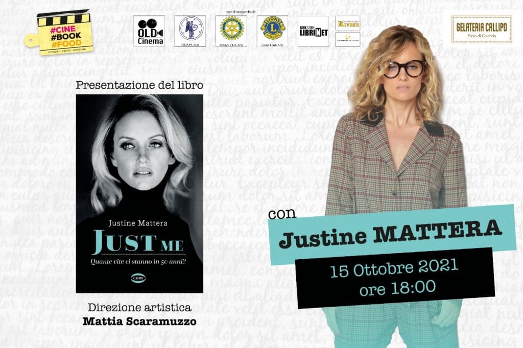 Il primo appuntamento del 2021, previsto il 15 ottobre 2021, alle ore 18.00, vede la presentazione del libro “Just me, quante vite ci sono in 50 anni”, della meravigliosa Justine Mattera, ex moglie di Paolo Limiti, nonché apprezzata showgirl e presentatrice.