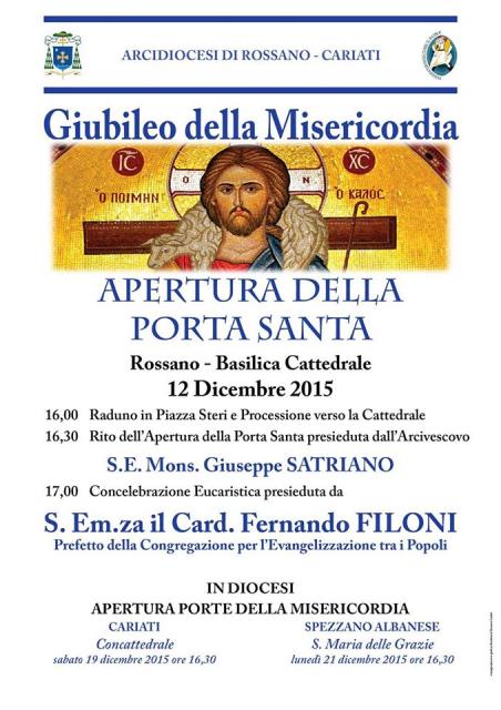 Dunque domani sarà sancita l’apertura della Porta Santa a Rossano, simbolo di Gesù Cristo che accoglie i fedeli verso la salvezza, in occasione di un Giubileo che, come ha dichiarato Papa Francesco, sarà celebrato per ricordare la misericordia del Cristo Salvatore.