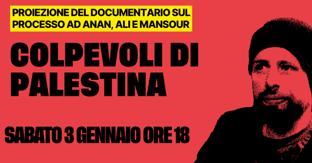 L’iniziativa di sabato non ha solo scopo divulgativo, ma rappresenta un atto di supporto concreto. L’intero ricavato della serata sarà destinato alla raccolta fondi per coprire le ingenti spese processuali necessarie alla difesa dei tre imputati e per il sostegno ai prigionieri palestinesi. “Il messaggio è chiaro,” affermano i promotori, “la solidarietà non si processa, la resistenza non è un reato. È necessario mobilitarsi per chiedere la libertà per Anan, Ali e Mansour”.