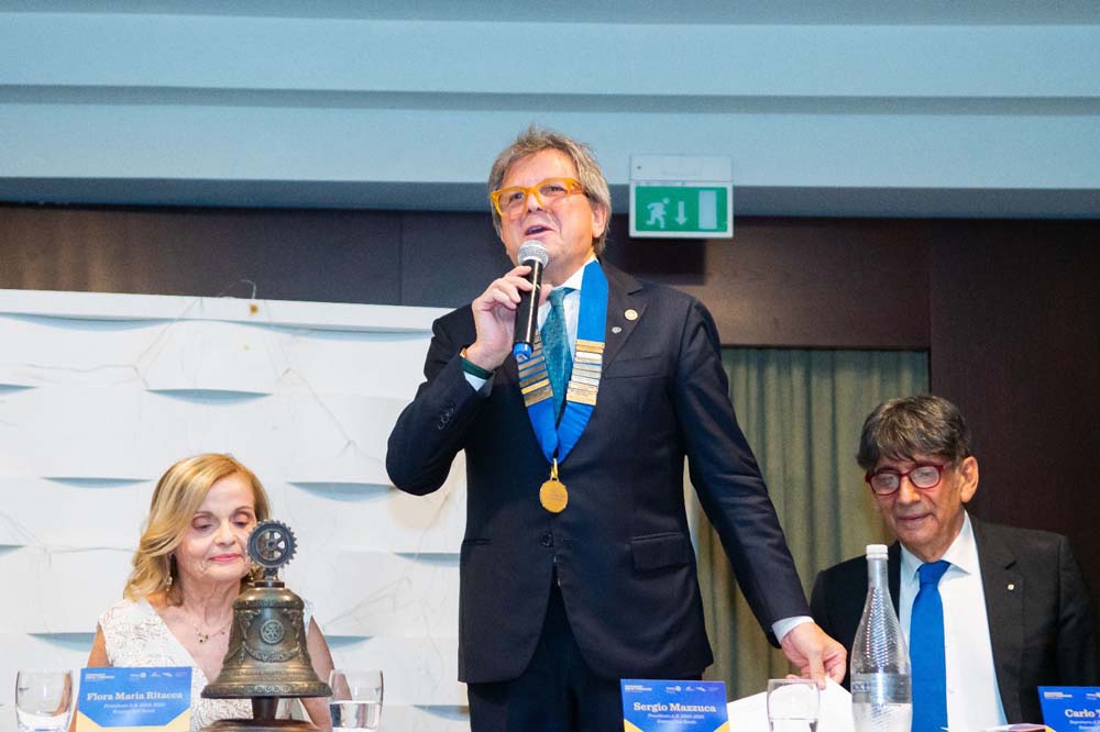 Nel suo discorso di insediamento, Sergio Mazzuca ha tracciato un percorso personale e sincero, partendo dalle proprie origini familiari fino ad arrivare al suo attuale ruolo imprenditoriale, sottolineando come i valori della condivisione, del servizio e del rispetto abbiano sempre guidato le sue scelte. “Si vince solo se si fa squadra – ha affermato – ed è questo principio che oggi mi guida anche nel Rotary. La vera forza risiede nel Noi”.