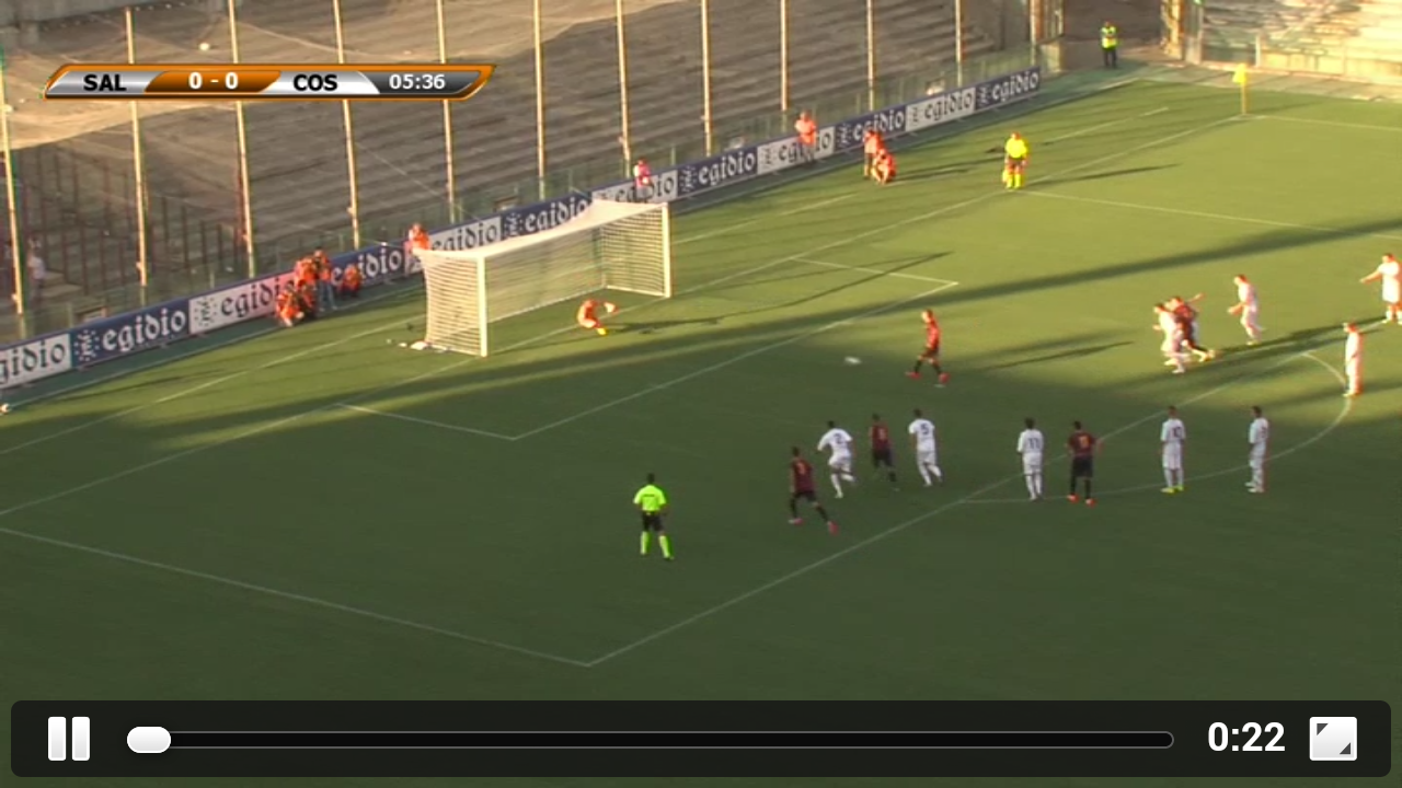 Inizia subito male per i rossoblu, Gabionetta guadagna un calcio di rigore (contatto con Sperotto) al 5′. Dal dischetto, proprio Gabionetta trasforma e sigla la rete del vantaggio salernitano. Al 18′ Sperotto si riscatta ed effettua un preciso traversone dalla sinistra per il possente centrale di difesa Magli che sigla la rete dell’1-1.